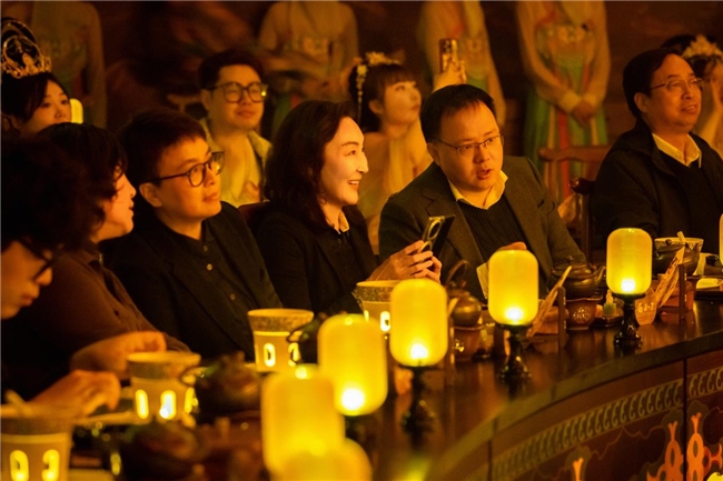 「代表团现场观摩项目演绎内容与沉浸式体验呈现」 在现场交流与研讨环节,代表团对项目在文化转译及沉浸式表达方面的实践进行了深入了解,并就文化内容如何在城市消费空间中实现有效呈现展开了多角度探讨。