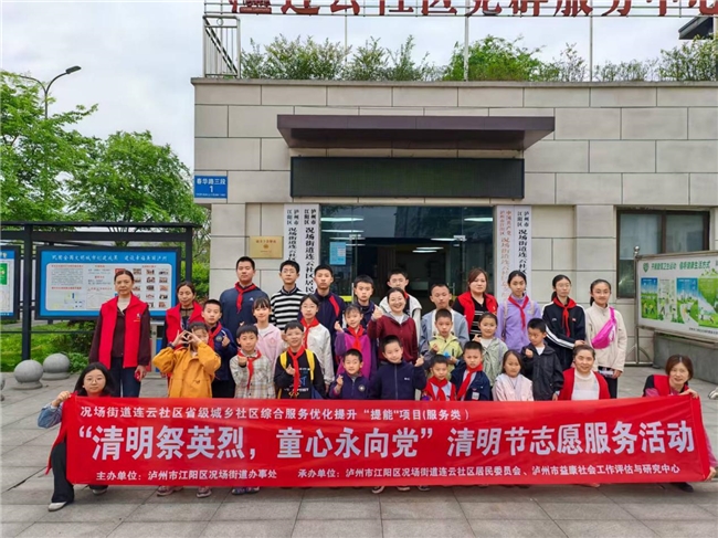 清明时节,追思悠悠。为缅怀革命先烈,传承红色基因,加强青少年爱国主义教育,2026年4月2日上午,况场街道连云社区组织开展了一场“清明祭英烈·童心永向党”志愿服务活动。本次活动是况场街道连云社区省级城乡社区综合服务优化提升“提能”项目的重要组成部分,吸引了青少年儿童志愿者共计25人积极参与。